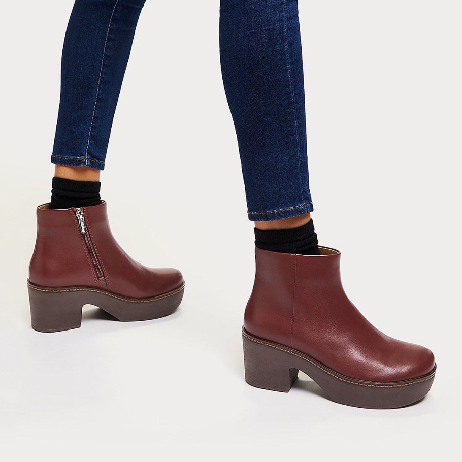 Fitflop Pilar Plateaustiefeletten Aus Leder Kastanienbraun