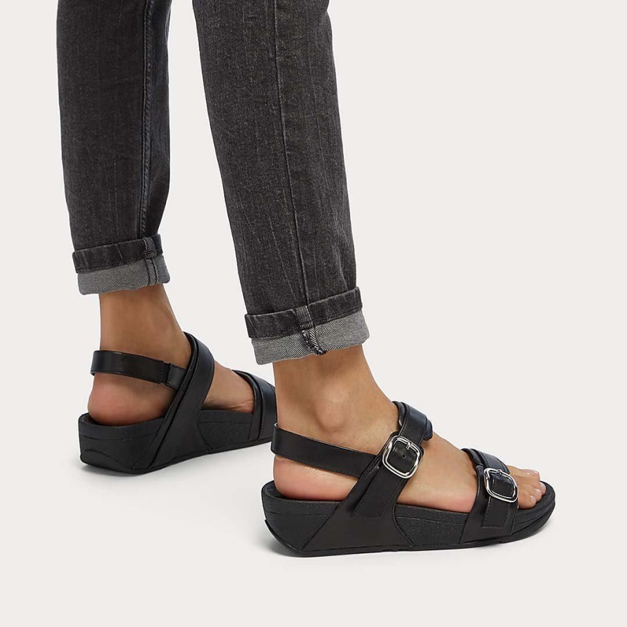 Fitflop Lulu Verstellbare Ledersandalen Ganz In Schwarz