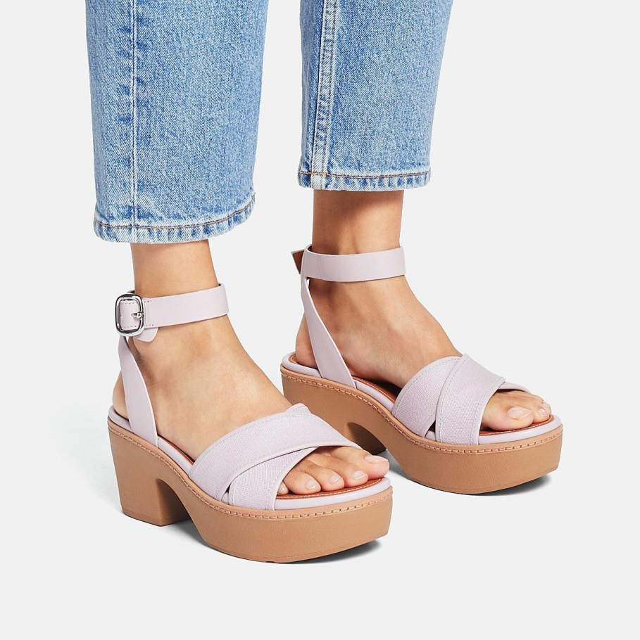 Fitflop Pilar Canvas-plateausandalen Mit Knöchelriemen Soft Lilac