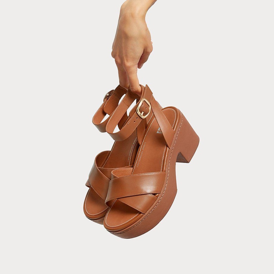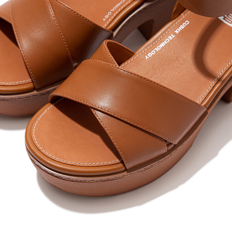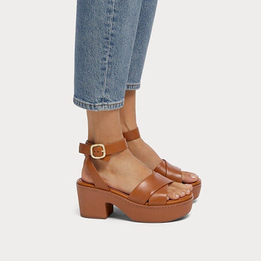Fitflop Pilar Leder Knöchelriemen Plattformen Hellbraun