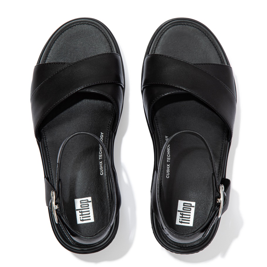 Fitflop Pilar-Leder-Knöchelriemen-Plattformen Ganz In Schwarz