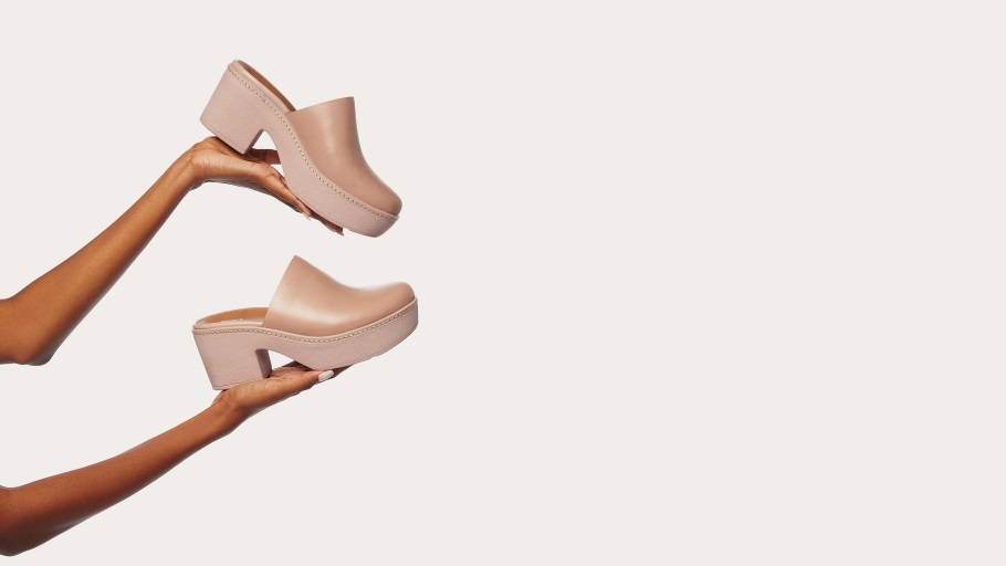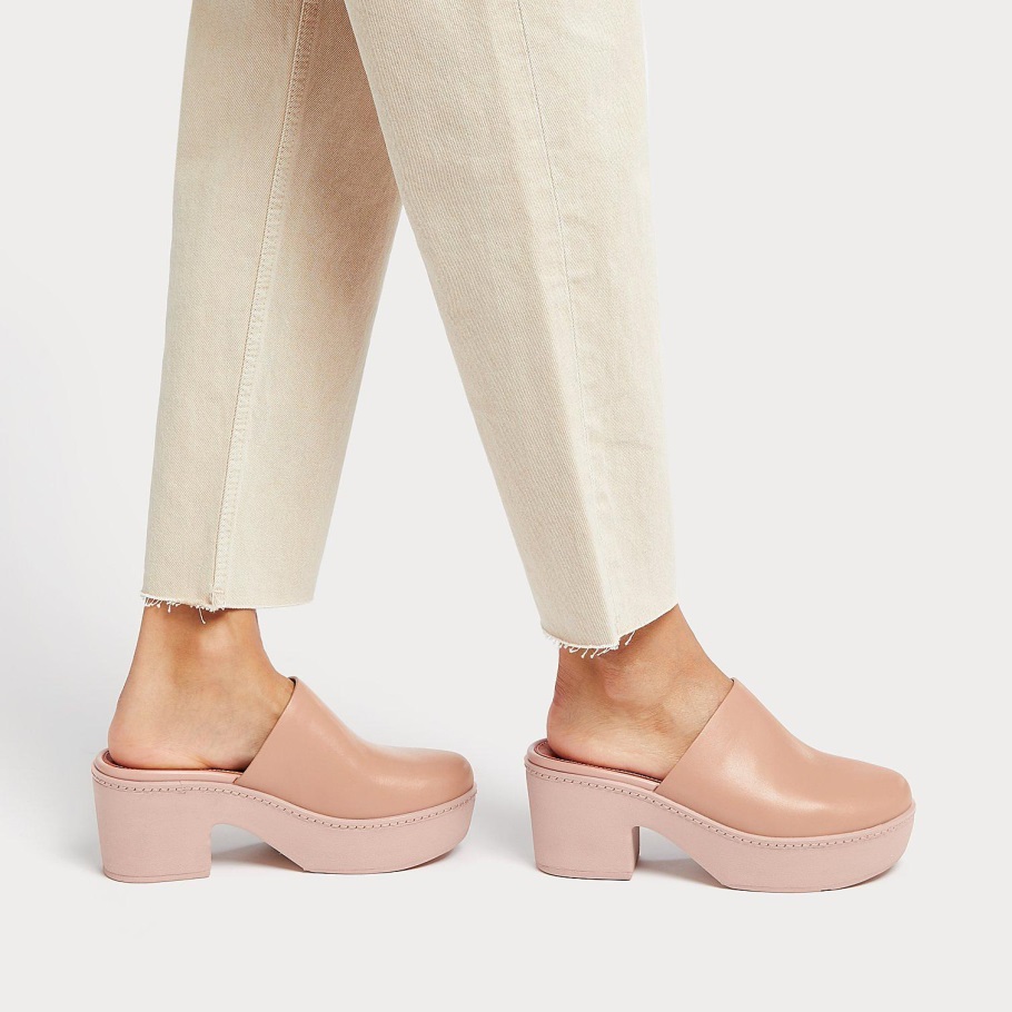 Fitflop Pilar Leder Mule Plattformen Nackt Rosa