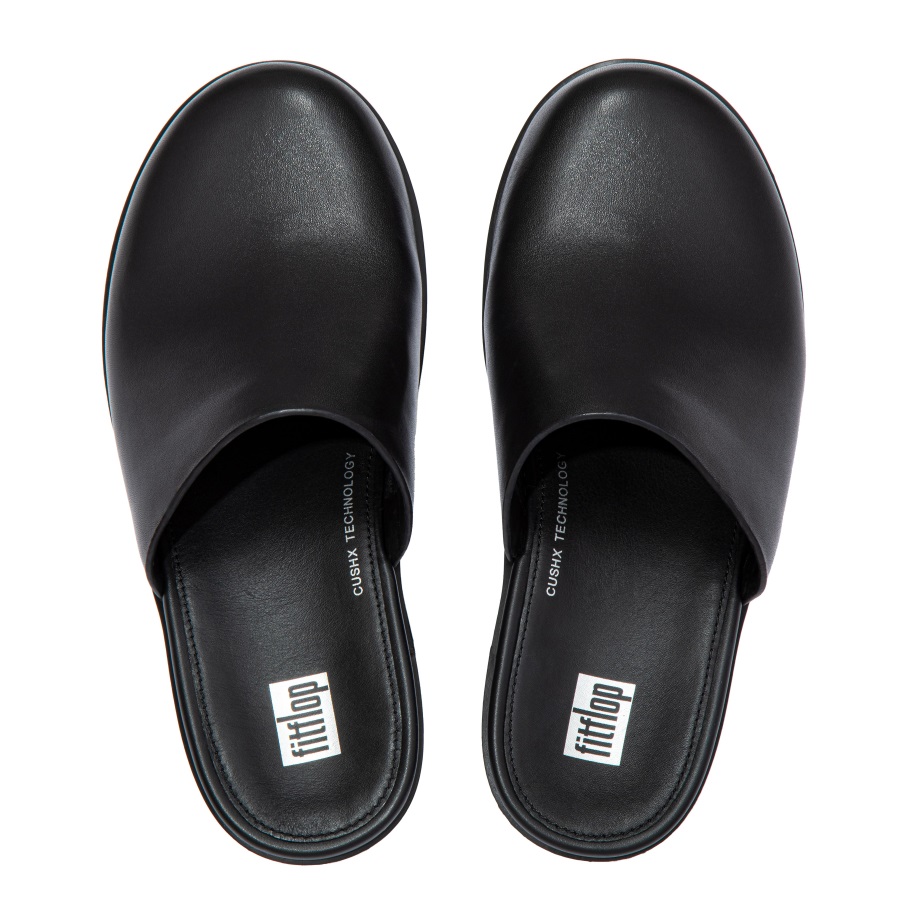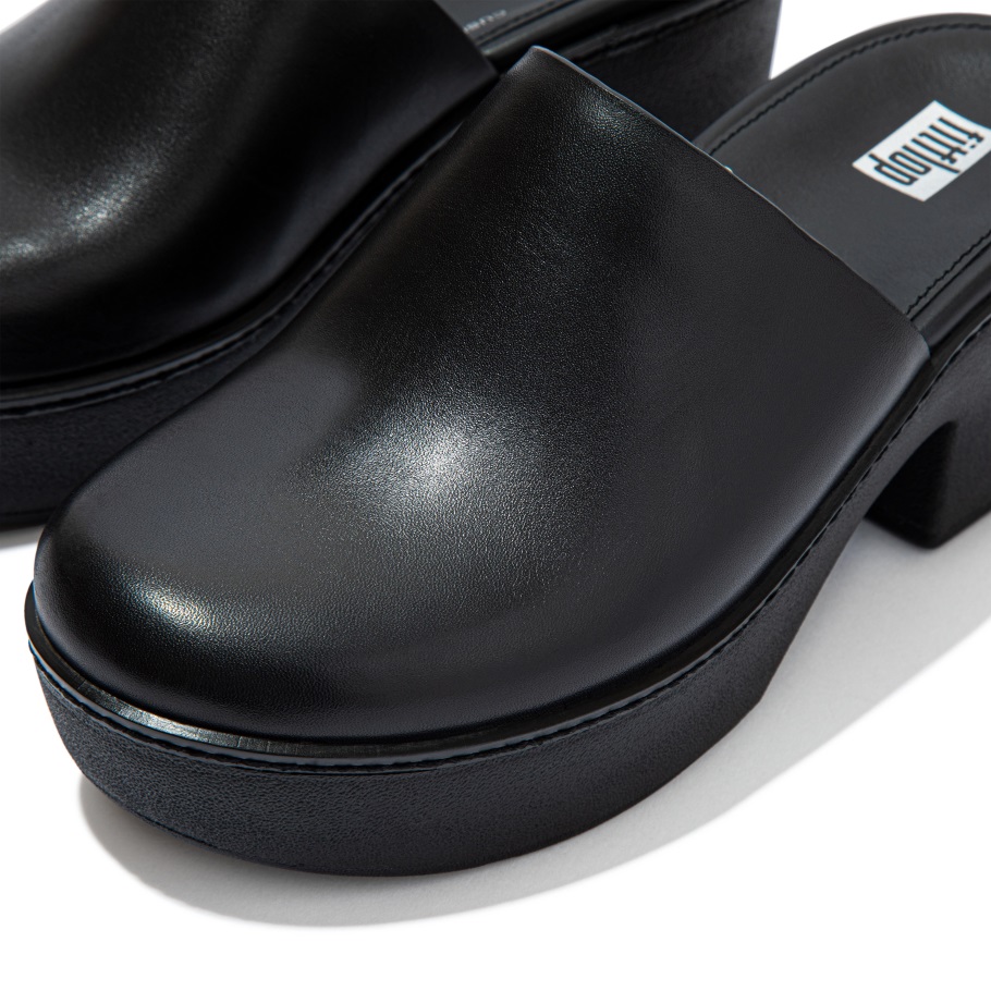Fitflop Pilar Leder-Mule-Plattformen Ganz In Schwarz