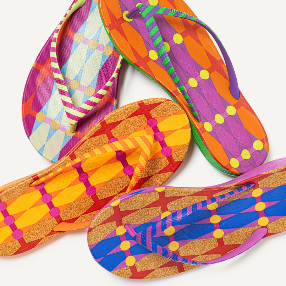 Schau Dir Diese Einfach An. Die Britisch-nigerianische Designerin Yinka Ilori Hat Unsere Meistverkauften Ergonomischen Flip-Flops In Lockdown überarbeitet Und Dabei Farbe Und Muster Verwendet, Um Freude, Hoffnung Und Glück Hervorzurufen. Darüber Werden Gestreifte Riemen Mit Fabelhaft Gemusterten Fußbetten Gepaart (beeinflusst Von Westafrikanischen Stoffen, Die Ihn Als Kind Umgaben). Darunter Sind Sie Mit Unserem Wohlfühl-iqushion? Zwischensohlen. Hergestellt Aus High-Rebound-Luftschaum Für Non-Stop-Dämpfung, Mit Fersen- Und Fußballen-Aufprallkissen Und Einer Konturierten Wölbung Für Natürlichen Halt Beim Gehen. Wahrscheinlich Die Fröhlichsten Flip-Flops Der Welt. Wasserdicht Und Rutschfest.