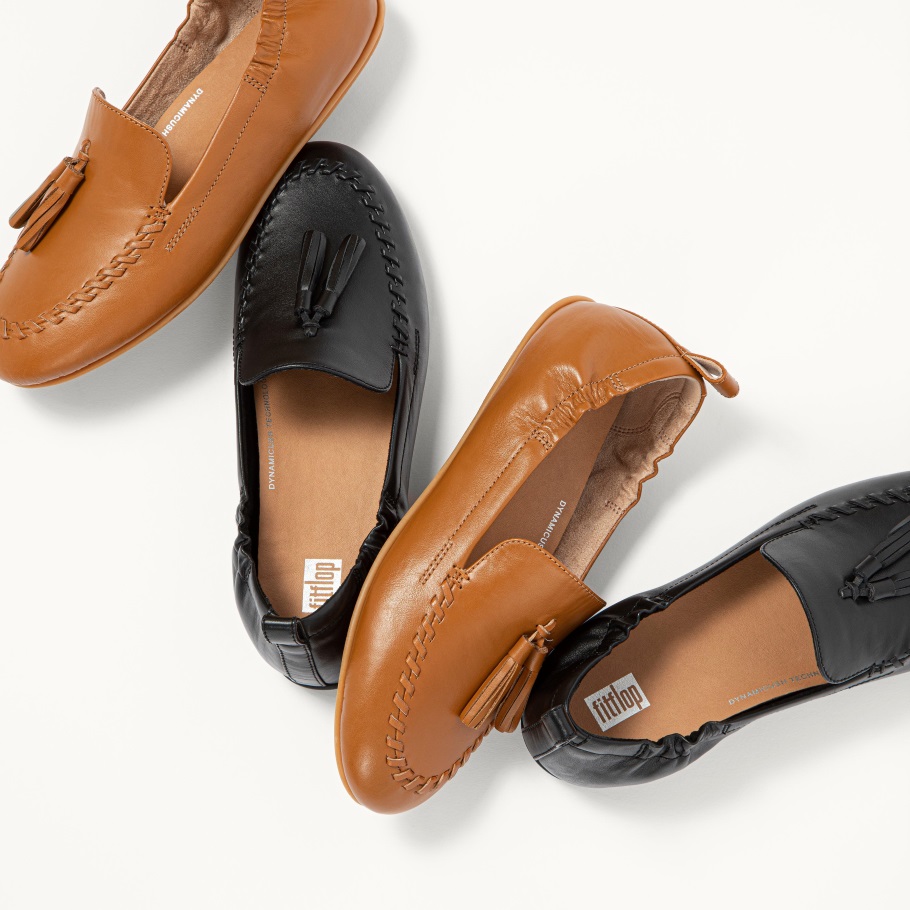 Fitflop Allegro Leder Loafer Mit Quasten Hellbraun