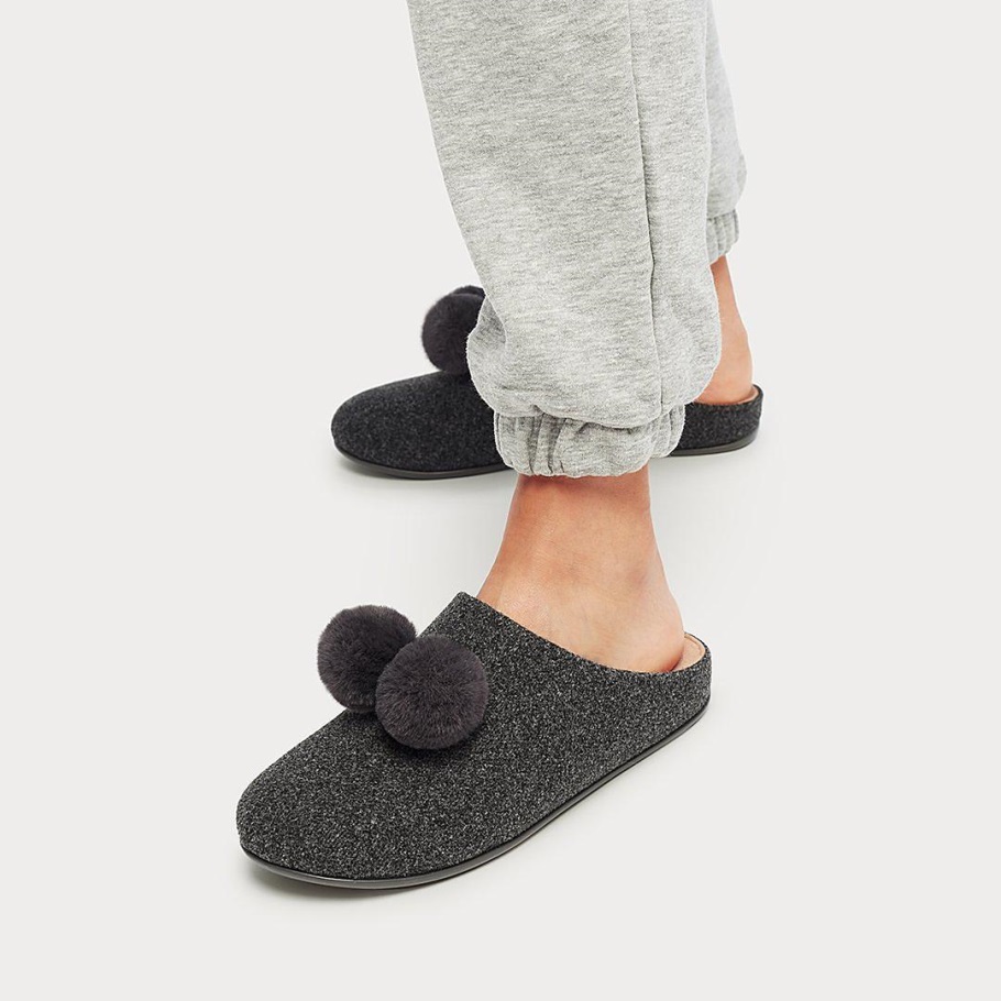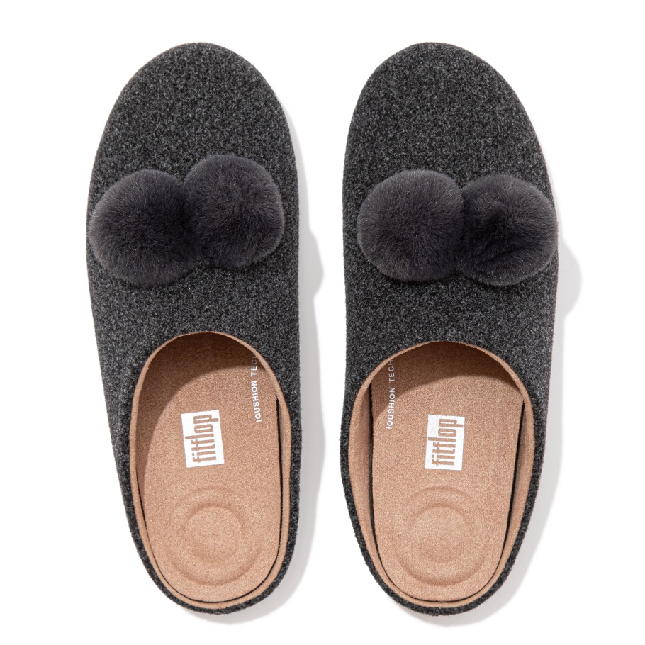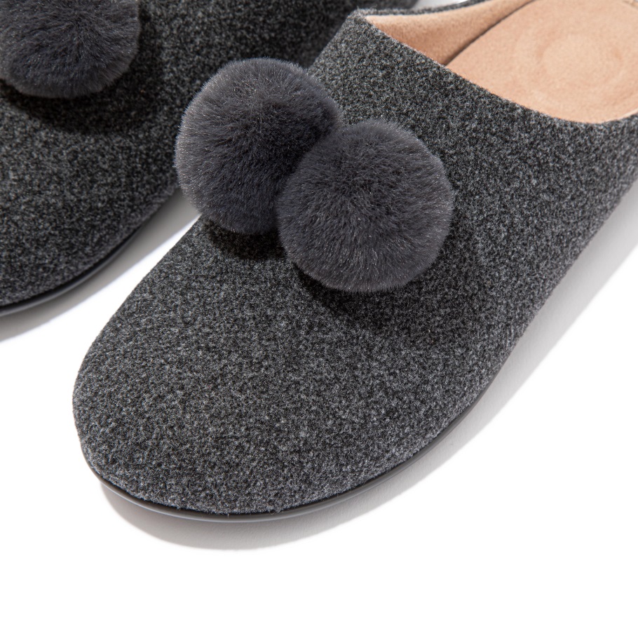 Fitflop Chrissie Pom-pom Filzpantoffeln Zinngrau