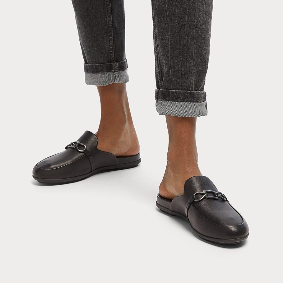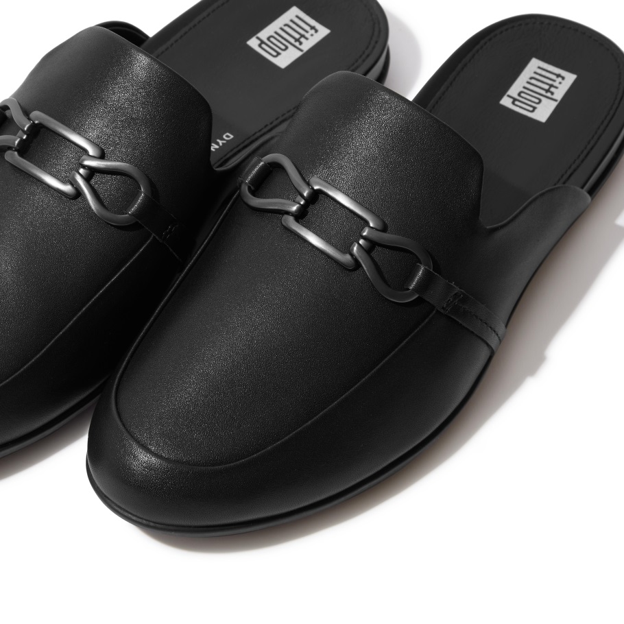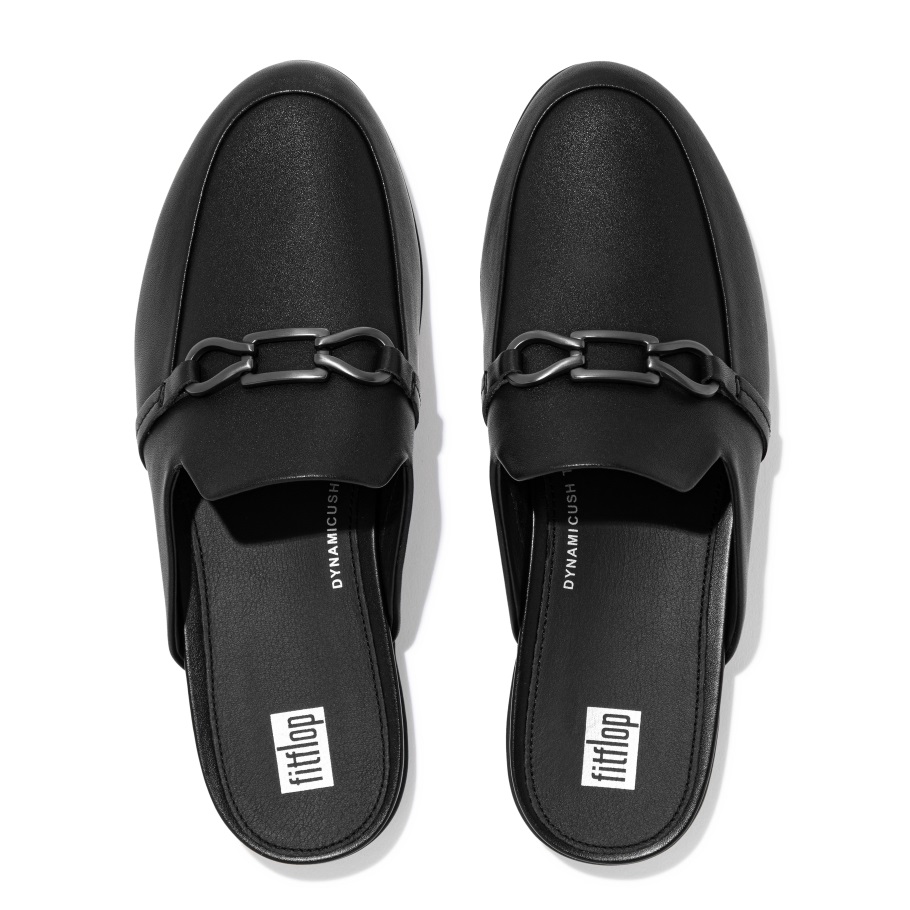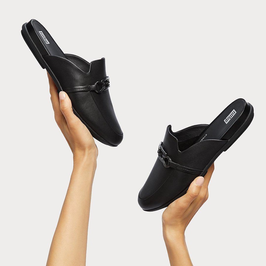 Fitflop Gracie Pantoletten Aus Leder Mit Kette, Ganz In Schwarz