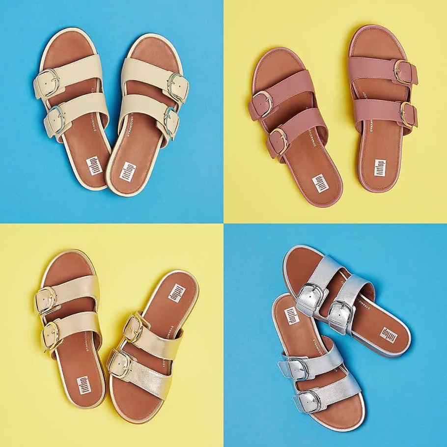 Folien, Die „schlank Und Einfach“ Auf Die Spitze Treiben. Sie Sehen Aus Wie Ultra-schicke Flache Schuhe, In Denen Man Schwer Laufen Kann ... Aber Schlüpfen Sie In Diese Und Sie Werden Schwören, Dass Sie In Ihren Bequemsten Schuhen Stecken. Dank Anatomisch Geformten Fußbetten, Die Deine Füße Stützen, Und Unserem High-rebound Dynamicush? Dämpfung (erstmals In Einer Sandale) Versteckt In Diesen Mit Leder Umwickelten Superschlanken Sohlen. Hier Aus Butterweichem Leder Mit Glänzenden Statement-Schnallen.