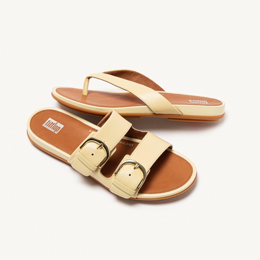 Fitflop Gracie Schnalle Lederpantoletten Blassgelb
