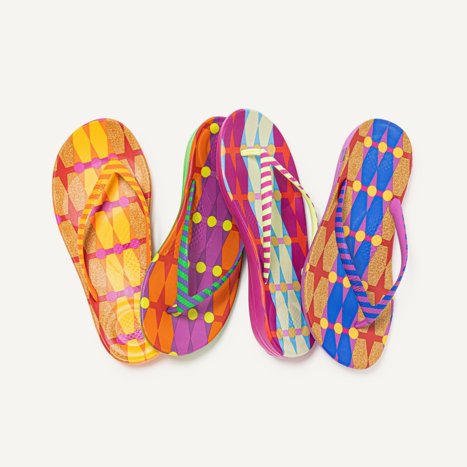 Schau Dir Diese Einfach An. Die Britisch-nigerianische Designerin Yinka Ilori Hat Unsere Meistverkauften Ergonomischen Flip-Flops In Lockdown überarbeitet Und Dabei Farbe Und Muster Verwendet, Um Freude, Hoffnung Und Glück Hervorzurufen. Darüber Werden Gestreifte Riemen Mit Fabelhaft Gemusterten Fußbetten Gepaart (beeinflusst Von Westafrikanischen Stoffen, Die Ihn Als Kind Umgaben). Darunter Sind Sie Mit Unserem Wohlfühl-iqushion? Zwischensohlen. Hergestellt Aus High-Rebound-Luftschaum Für Non-Stop-Dämpfung, Mit Fersen- Und Fußballen-Aufprallkissen Und Einer Konturierten Wölbung Für Natürlichen Halt Beim Gehen. Wahrscheinlich Die Fröhlichsten Flip-Flops Der Welt. Wasserdicht Und Rutschfest.