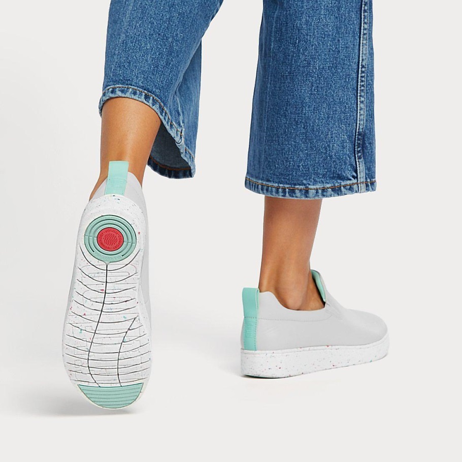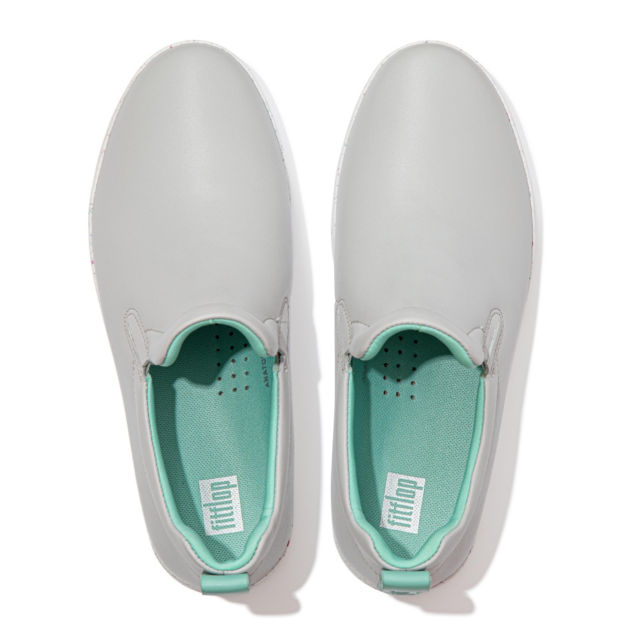 Fitflop Rally Leder-Skate-Sneaker Mit Gesprenkelter Sohle, Weicher Grauer Mix