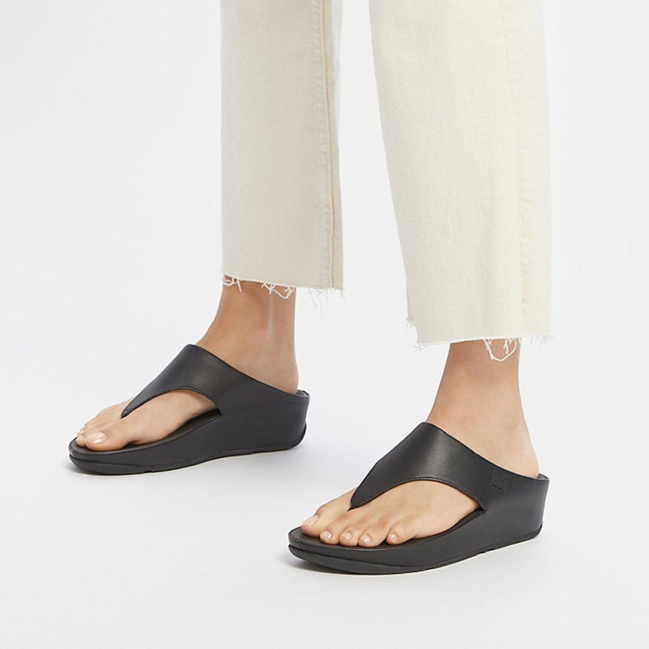 Fitflop Shuv Zehenstegsandalen Aus Leder Ganz In Schwarz