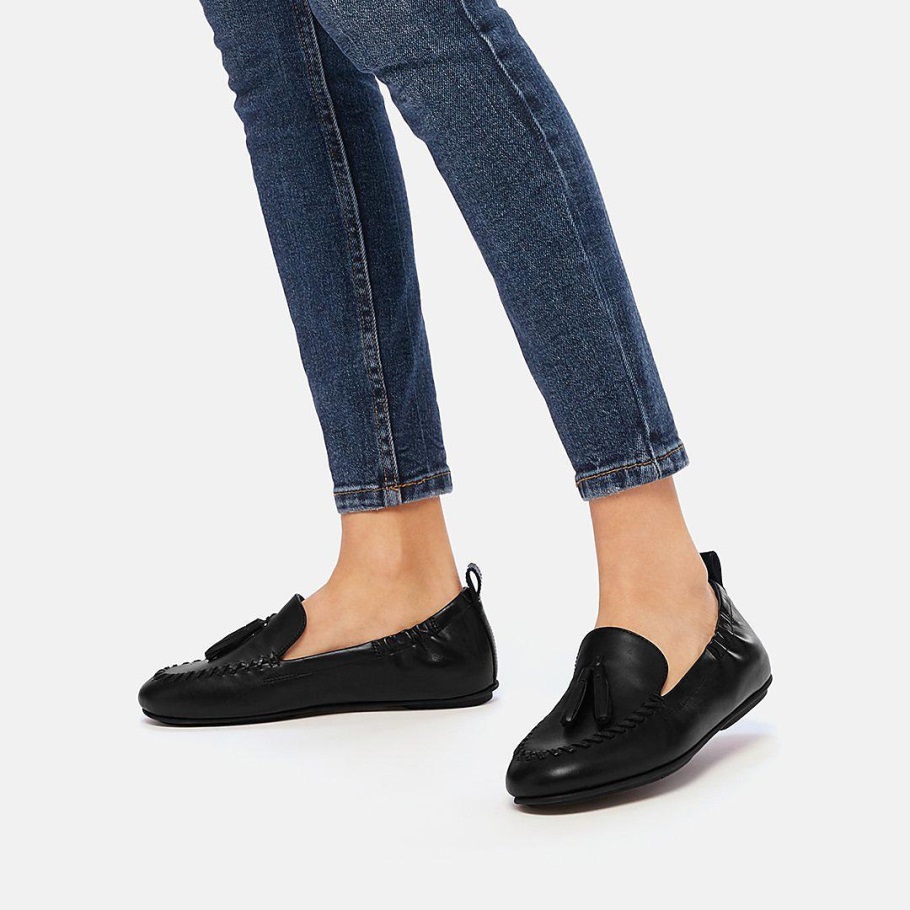 Fitflop Allegro Quasten-Leder-Loafer Ganz In Schwarz
