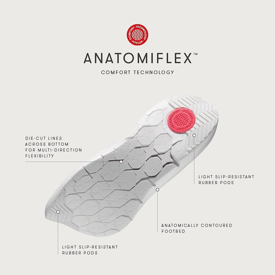 Diese Raffinierte Version Des Strick-Sneakers Kombiniert Ergonomischen Komfort Mit Dezentem, Gutem Aussehen. Das Leichte, Atmungsaktive Obermaterial Aus Technischem Strick Ist Mit Kurvigen Bahnen überlagert (aus Geprägtem, Durchsichtigem TPU). Auf Der Vorderseite Befindet Sich Ein Hauch Von Fitflop-roten Details. Und Eine Zuglasche Und Eine Gepolsterte Neoprenferse Hinten. Alles Auf Unseren Leichten, Ultraflexiblen Anatomiflex Mit Hohem Rückprall? Zwischensohlen. Glatt. Modern. Perfekt Zu Jeans Oder Um Einen Anzug "drunter" Zu Machen.