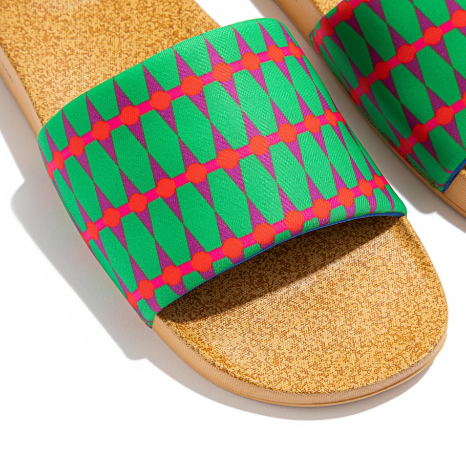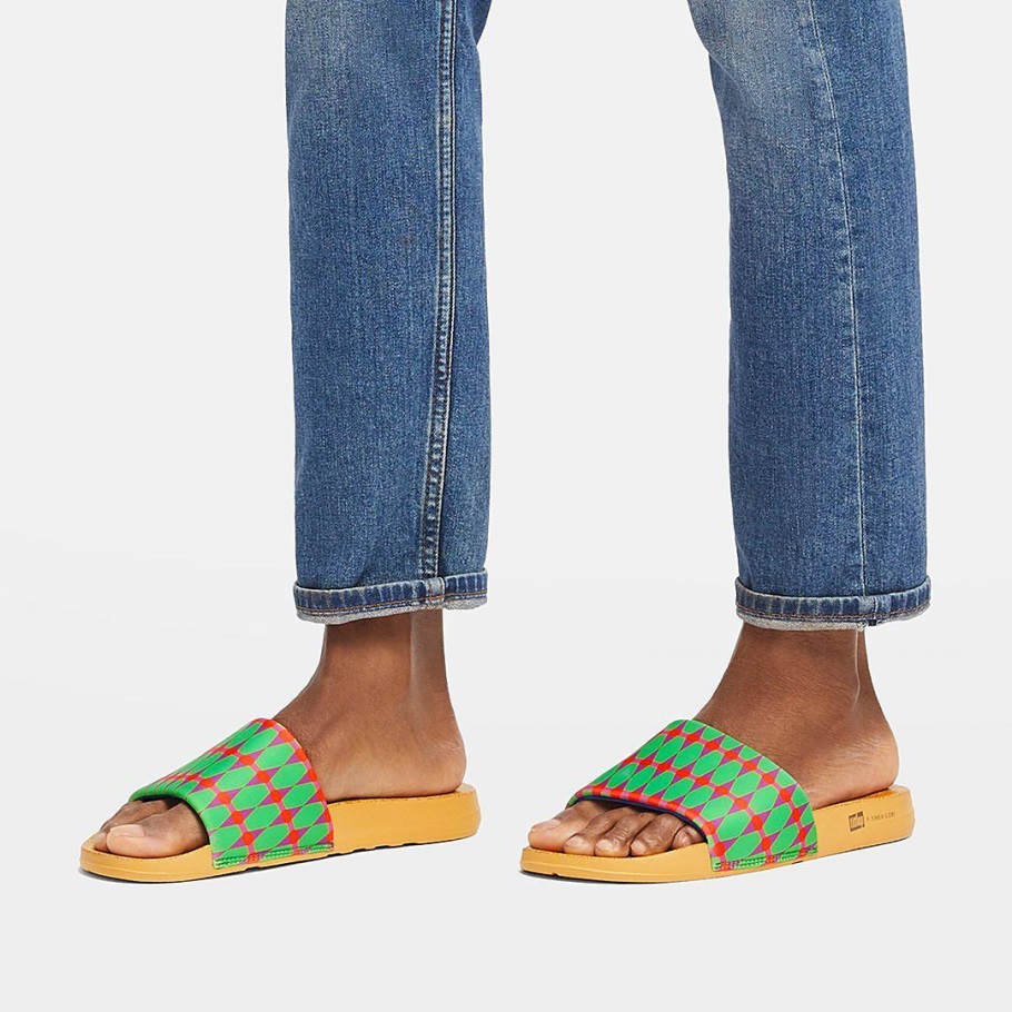 Fitflop Iqushion X Yinka Ilori Wasserabweisende Pantoffeln Für Herren Grün-feuerrot