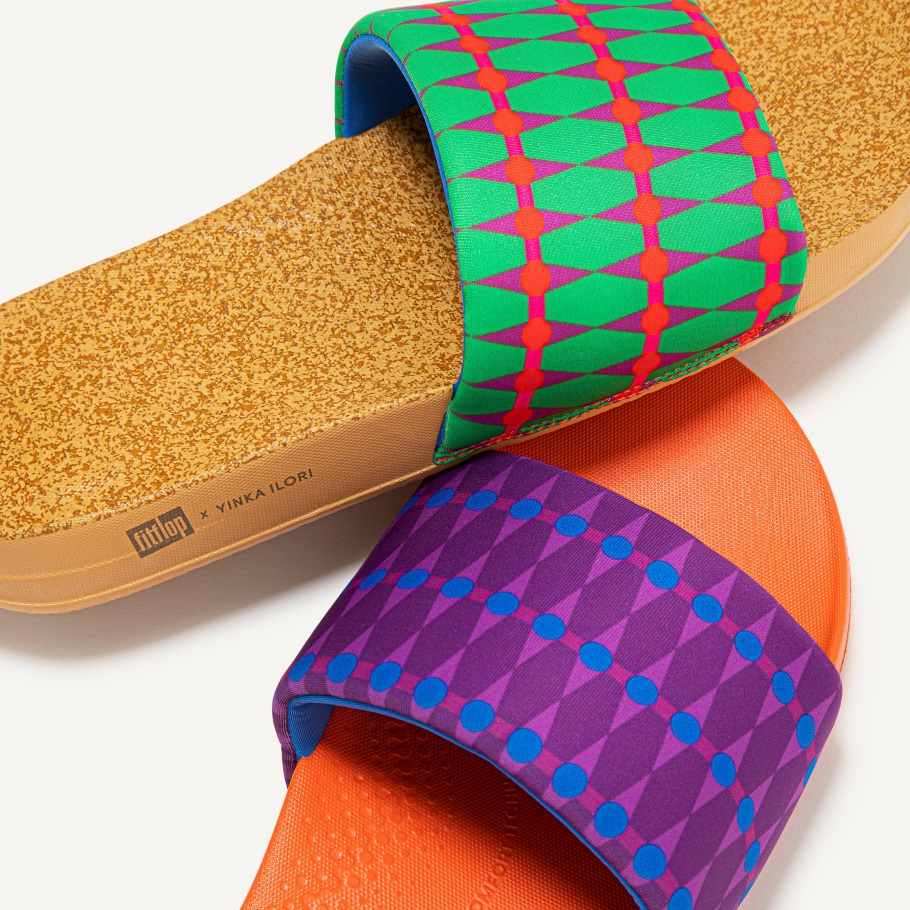 Kühn, Hell (und Unschlagbar Bequem). Der Britische Nigerianische Designer Yinka Ilori Hat Unsere Sportlich-lässigen Poolrutschen In Seinem Charakteristischen, Fröhlichen, Farbenfrohen Stil überarbeitet. Darüber Gemusterte Gepolsterte Riemen (beeinflusst Von Westafrikanischen Stoffen, Die Ihn Als Kind Umgaben), Knallfarbene Futter Und Fußbetten Mit Korkdruck. Darunter Unser Iqushion? Zwischensohle: Ergonomisch Geformte Luftschaumdämpfung Mit Hoher Rückfederung – Mit Aufprallkissen Vorne Und Hinten Und Natürlicher Unterstützung Des Fußgewölbes – Für Ganztägigen Gehkomfort. Ideal Zum Auspolstern Zu Hause Oder Am Strand. Eintauchen! (Riemen/Futter Aus Wasserabweisendem Neopren, Damit Wassertropfen Abperlen Und Schnell Trocknen, Wenn Sie Durchnässt Sind.)