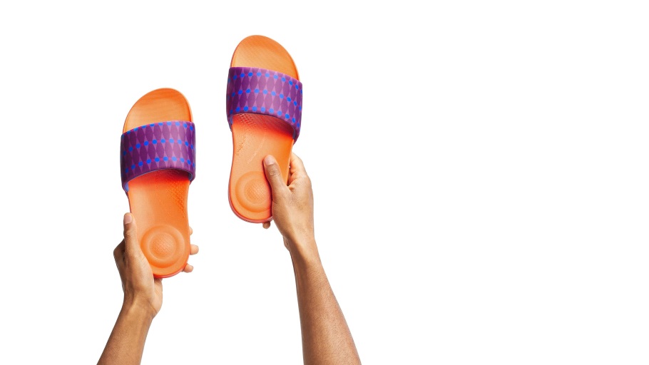 Kühn, Hell (und Unschlagbar Bequem). Der Britische Nigerianische Designer Yinka Ilori Hat Unsere Sportlich-lässigen Poolrutschen In Seinem Charakteristischen, Fröhlichen, Farbenfrohen Stil überarbeitet. Oben Gemusterte, Gepolsterte Träger (beeinflusst Von Westafrikanischen Stoffen, Die Ihn Als Kind Umgaben) Mit Futter In Knalligen Farben. Darunter Unser Iqushion? Zwischensohle: Ergonomisch Geformte Luftschaumdämpfung Mit Hoher Rückfederung – Mit Aufprallkissen Vorne Und Hinten Und Natürlicher Unterstützung Des Fußgewölbes – Für Ganztägigen Gehkomfort. Ideal Zum Auspolstern Zu Hause Oder Am Strand. Eintauchen! (Riemen/Futter Aus Wasserabweisendem Neopren, Damit Wassertropfen Abperlen Und Schnell Trocknen, Wenn Sie Durchnässt Sind.)