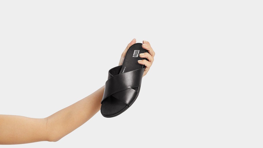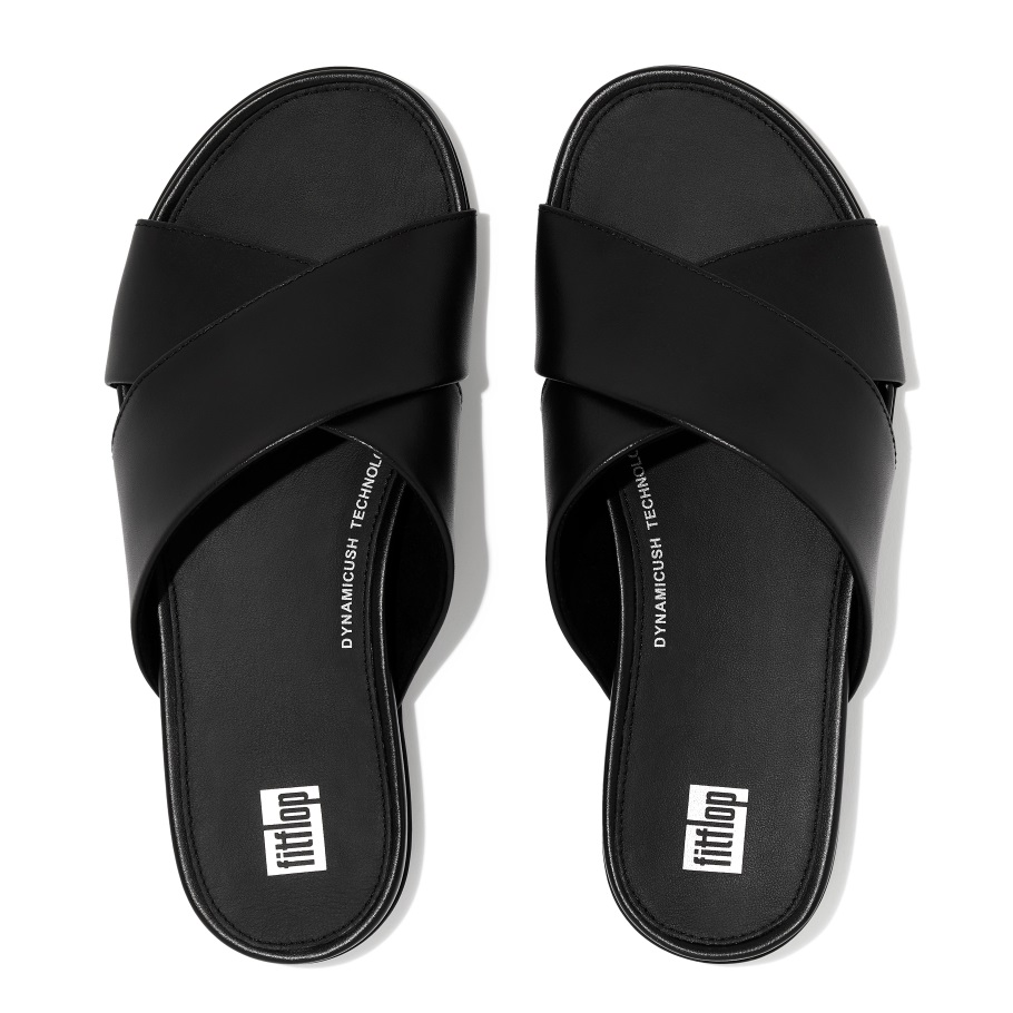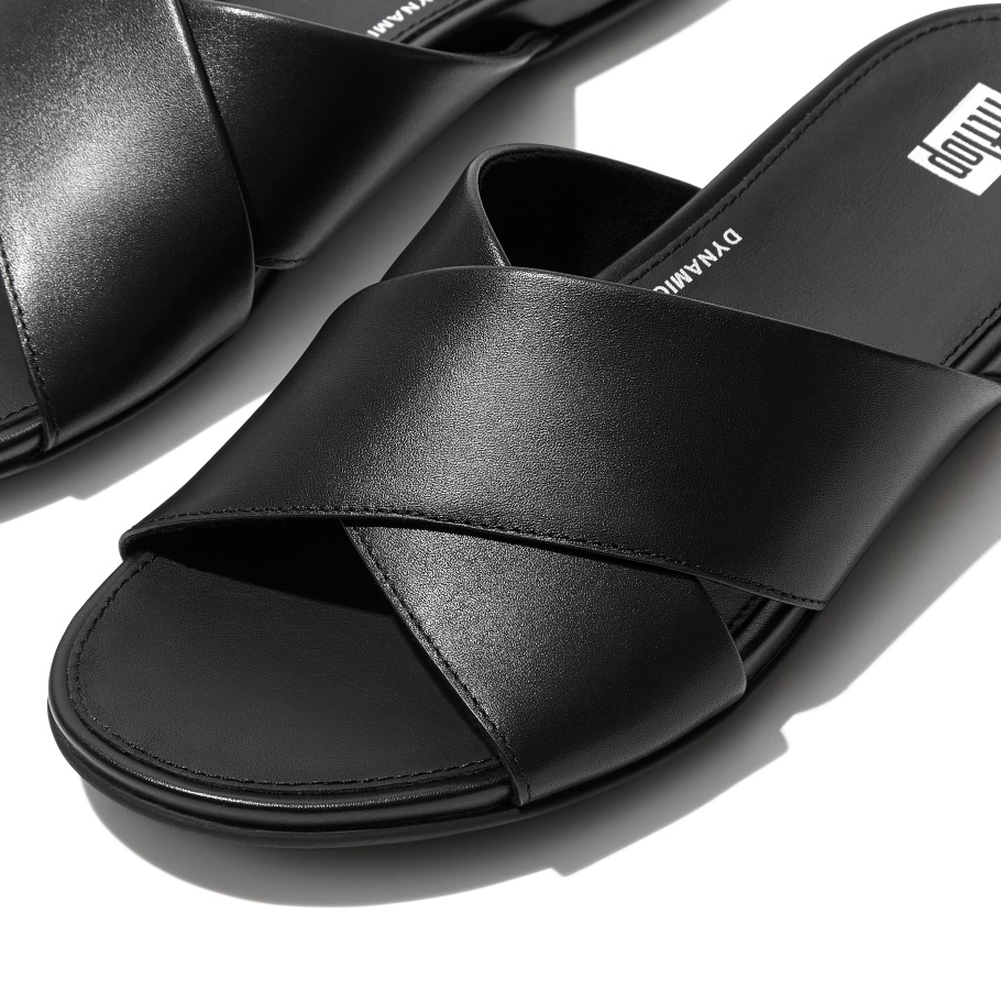 Fitflop Gracie Cross Slides Aus Leder Ganz In Schwarz