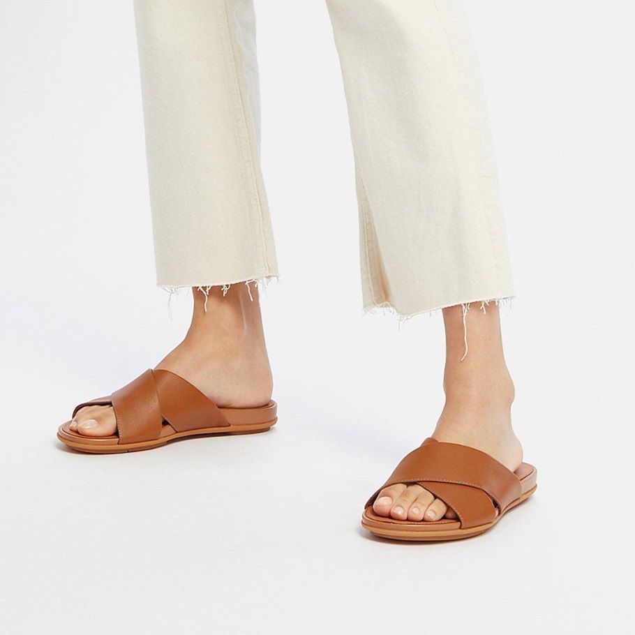 Fitflop Gracie Leder Kreuzpantoletten Hellbraun