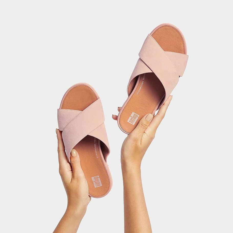 Fitflop Gracie Wildleder Kreuz Rutschen Nackt Rosa