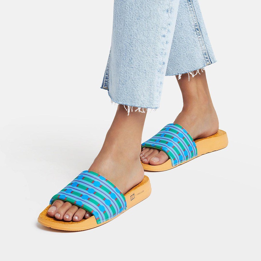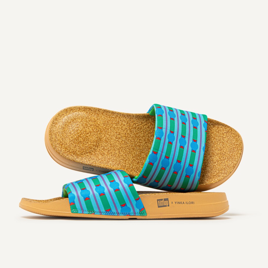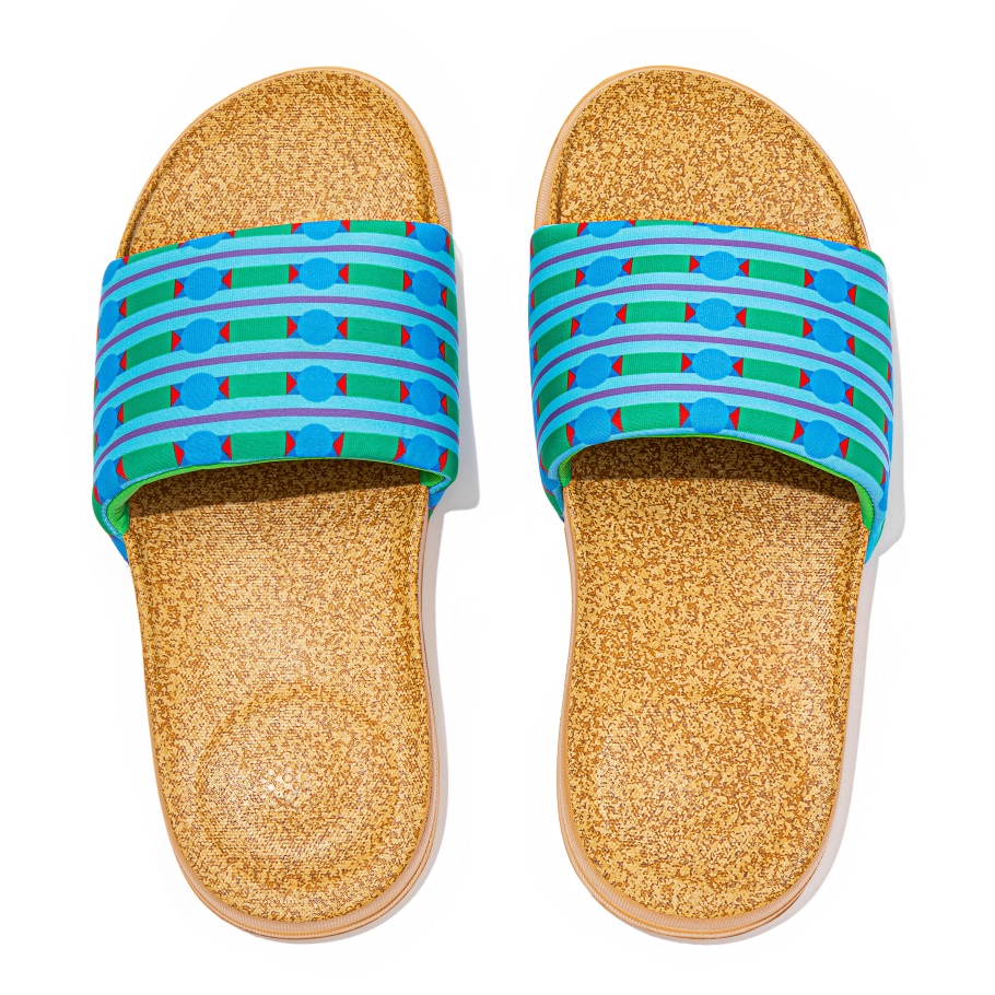 Startseite| Frauen| Slides| Fitflop Iqushion X Yinka Ilori Wasserfeste Pantoffeln Eisblau-grün