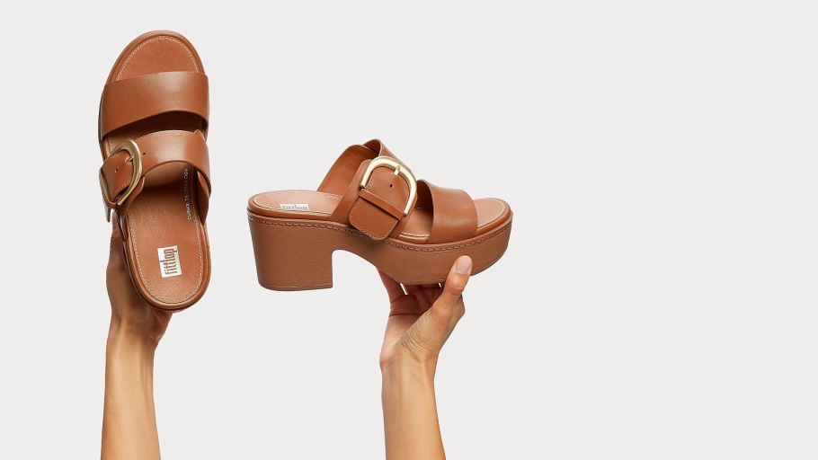 Fitflop Pilar Leder Pantoffeln Hellbraun