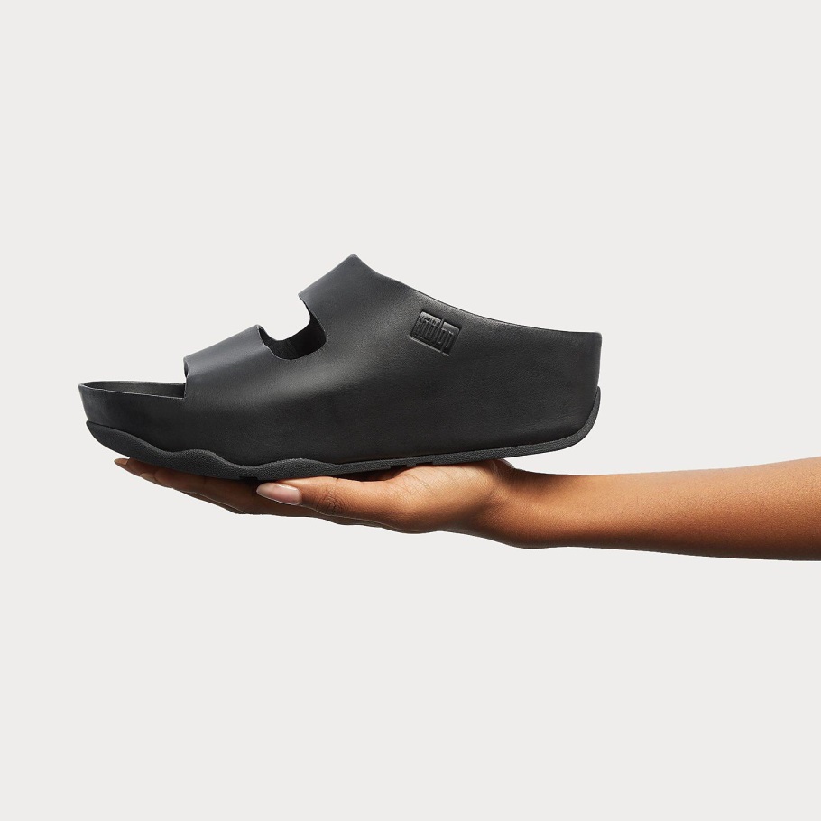 Fitflop Shuv Sandalen Aus Leder Mit Zwei Riegeln, Ganz In Schwarz