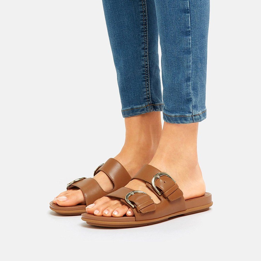 Hellbraune Pantoletten Aus Leder Mit Gracie-Schnalle Von Fitflop