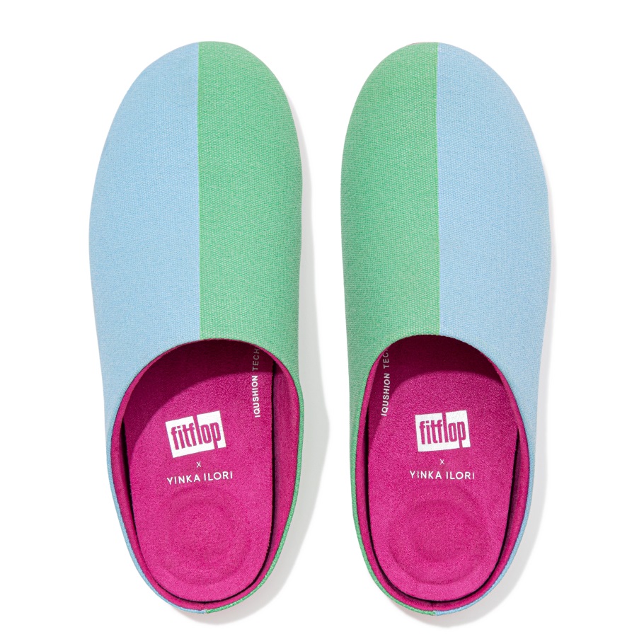 Fitflop Chrissie X Yinka Ilori Canvas Hausschuhe Eisblau-grün