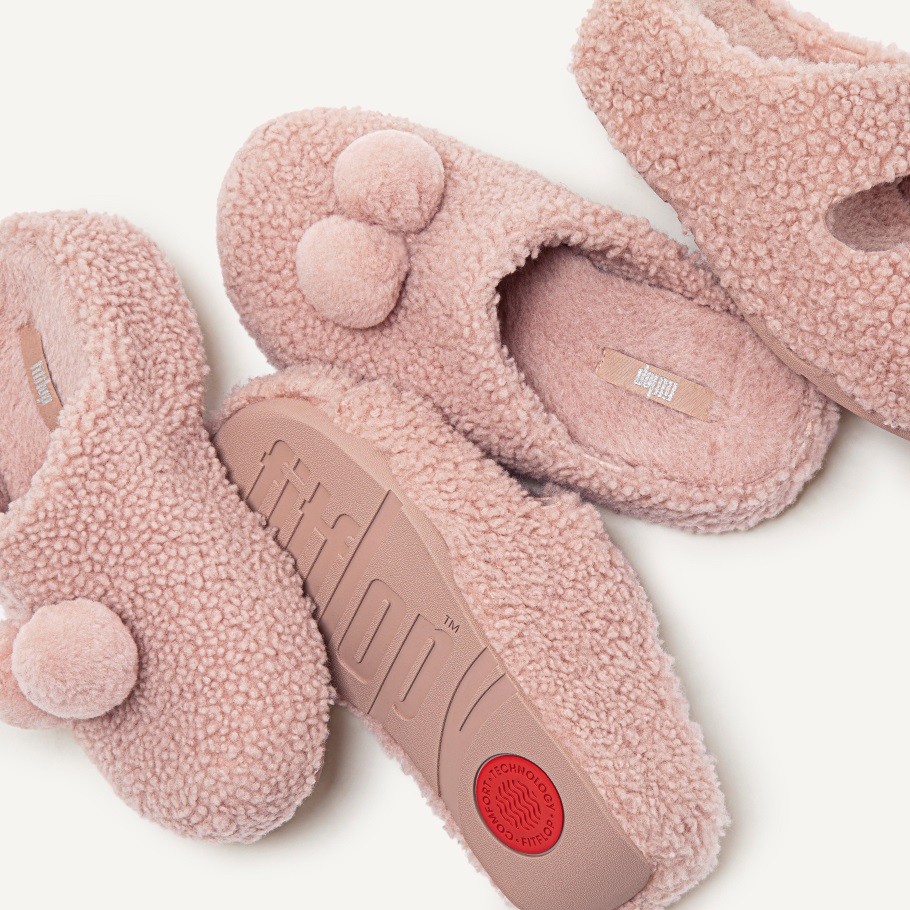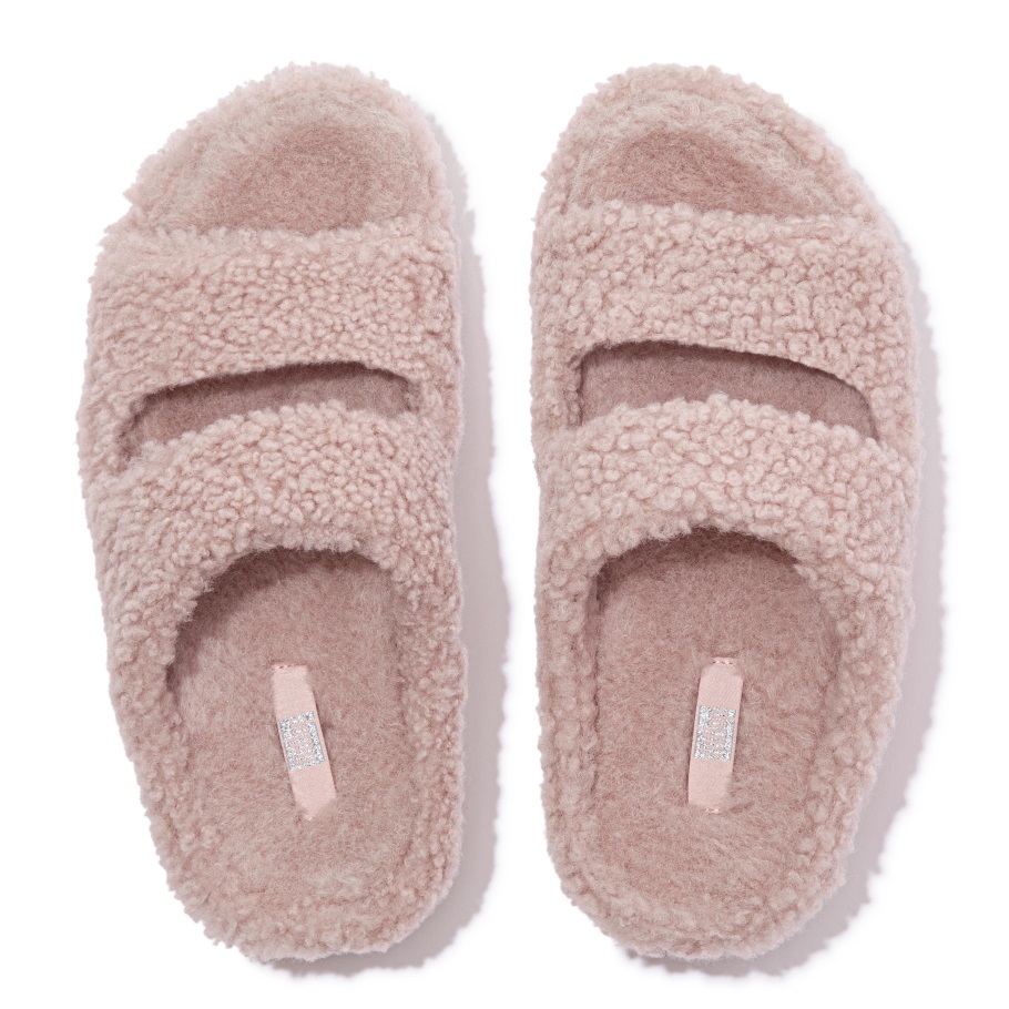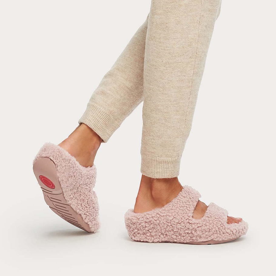 Fitflop Shuv Shearling-Pantoletten Mit Zwei Riegeln In Zartrosa