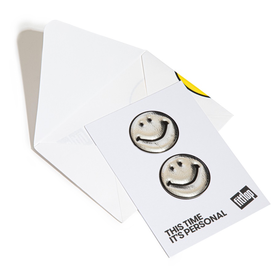 Holen Sie Sich Ein Paar Original-Harvey-Ball-Smiley-Aufkleber Von 1963, Um Turnschuhe, Clogs, Hausschuhe, Gummistiefel, Handtaschen Und Handyhüllen Zu Personalisieren. Diese Version Aus Metallisch Glänzendem Kunstleder Mit Wasserfestem Klebstoff (platzieren Sie Ihre Sorgfältig, Sie Bleiben Einmal Haften!) Wir Sind Stolz Darauf, Dass 10 % Des Kaufpreises Davon Der Harvey Ball World Smile Foundation Zugute Kommen. Durchmesser: 45 Mm, Tiefe: 2 Mm. Exklusiv Online
