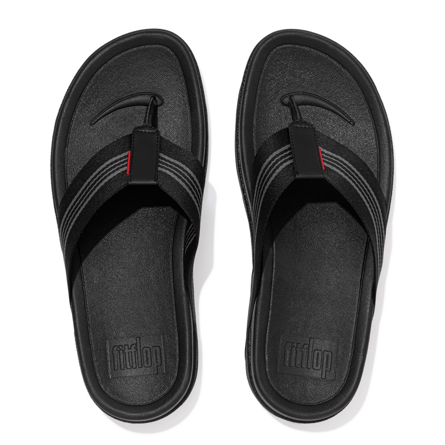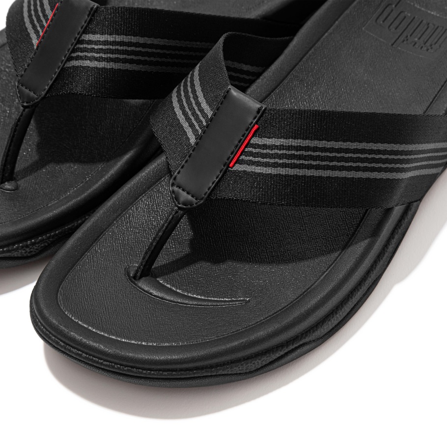 Fitflop Surfer Herren-Sandalen Mit Zehensteg Und Streifen, Ganz In Schwarz