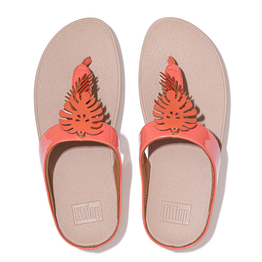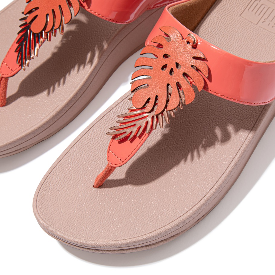 Fitflop Fino Dschungelblatt-lacksandalen Korallenrosa