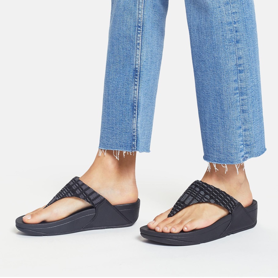 Startseite| Frauen| Toe-Posts| Fitflop Lulu Art-Denim Zehenstegsandalen Ganz In Schwarz