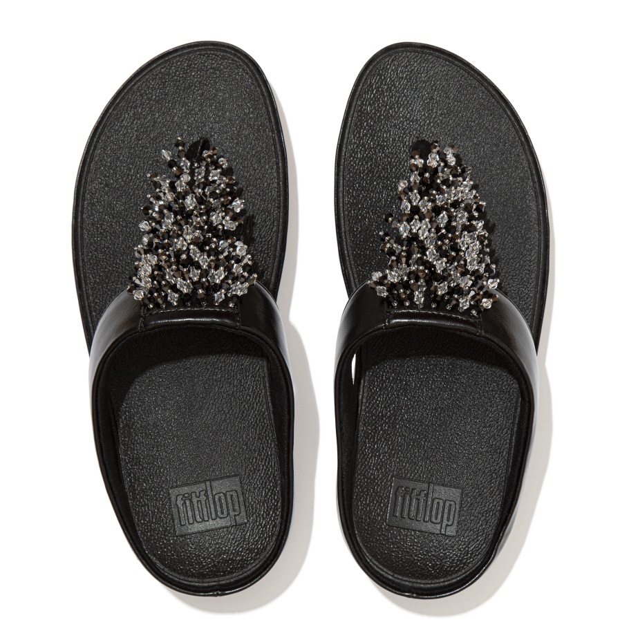 Fitflop Rumba Perlenbesetzte Toe-post-sandalen Ganz In Schwarz