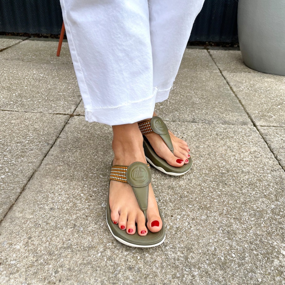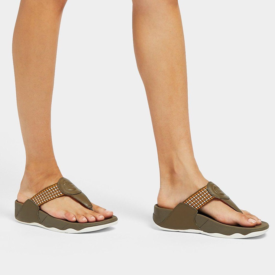 Fitflop Walkstar Feinstreifige Zehenstegsandale Mossy-Mix