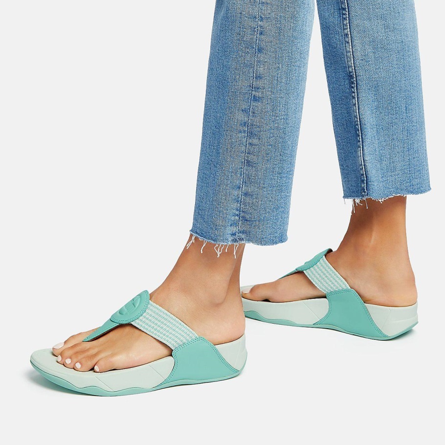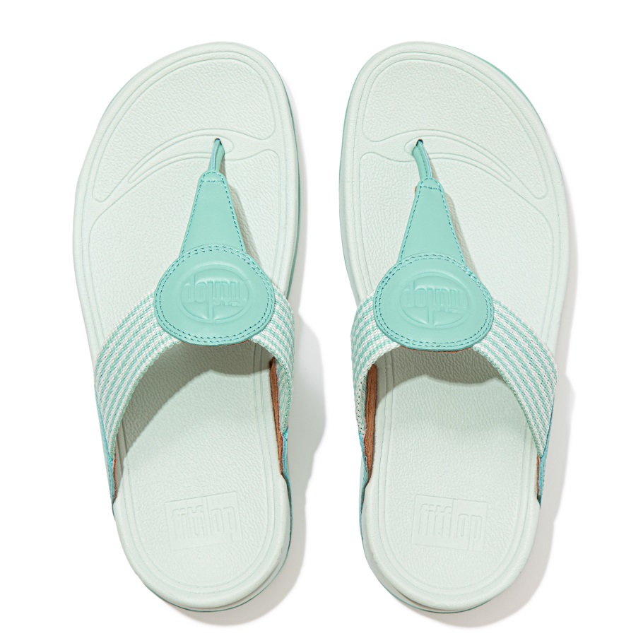 Fitflop Walkstar Feinstreifige Zehenstegsandale Sea Foam Green