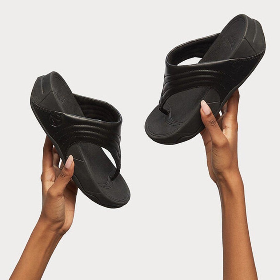 Fitflop Walkstar Zehenstegsandalen Aus Leder Ganz In Schwarz