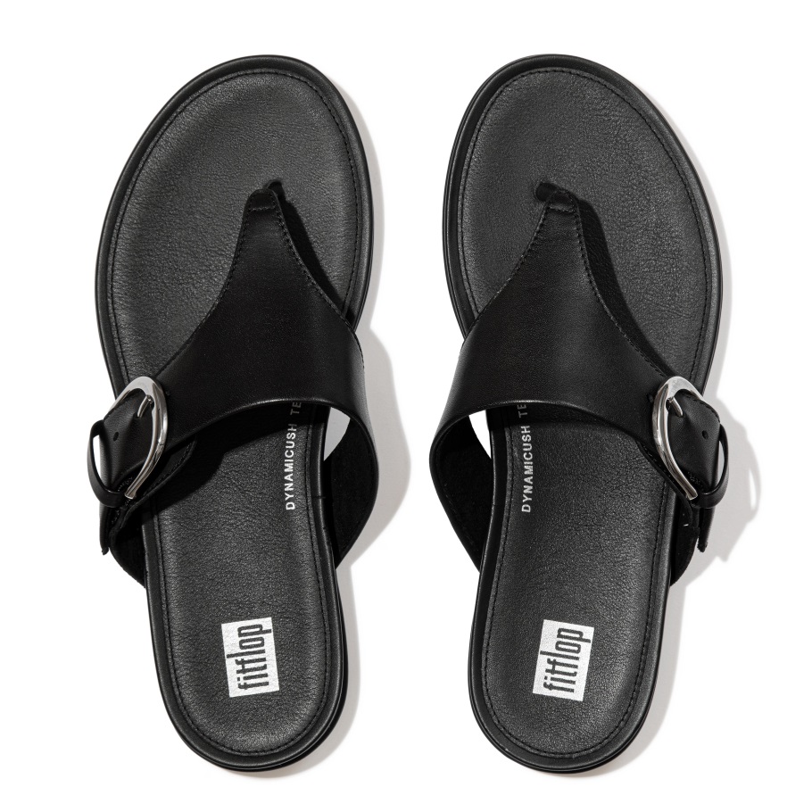 Zehenstegsandalen Aus Leder Mit Gracie-Schnalle Von Fitflop, Ganz In Schwarz